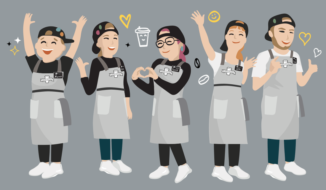 Вовлечённость, энергия, драйв, любовь к гостям и кофе – наши ключевые принципы. У нас каждый готов поделиться своим опытом, вдохновить и поддержать друг друга